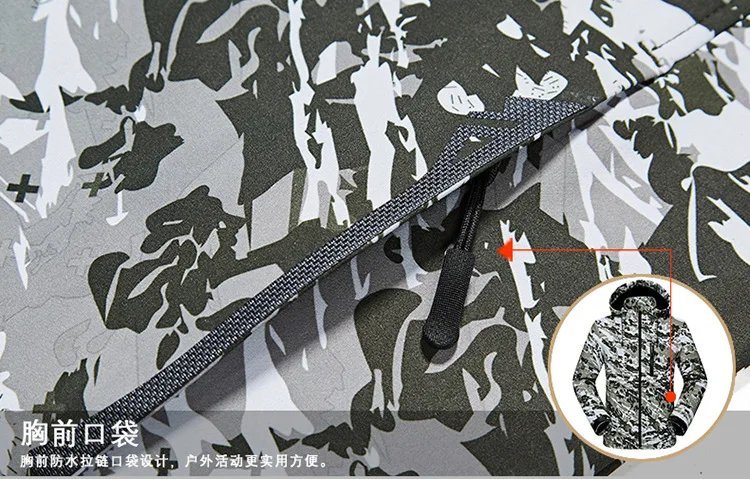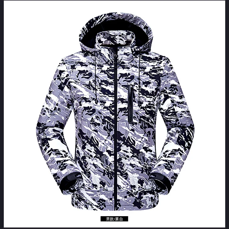 Зимняя флисовая мужская куртка для пеших прогулок, камуфляжная куртка с капюшоном, водонепроницаемая ветрозащитная куртка для улицы, для горных прогулок, кемпинга, флисовые пальто