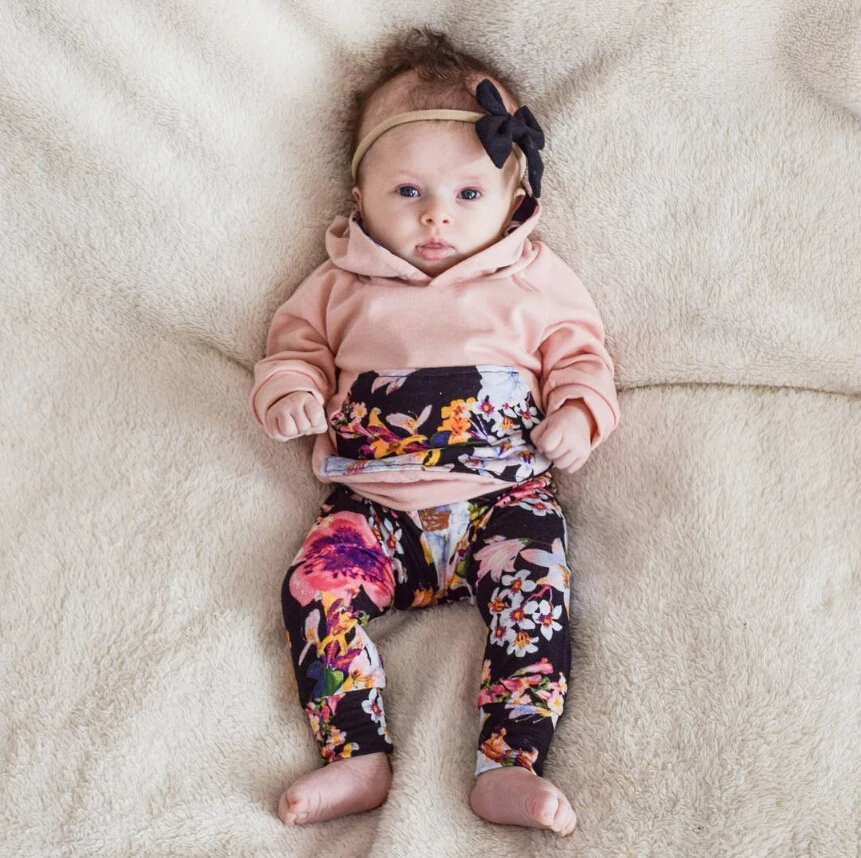 Новинка 2017 года; комплект одежды для новорожденных девочек из 2 предметов с цветочным рисунком!