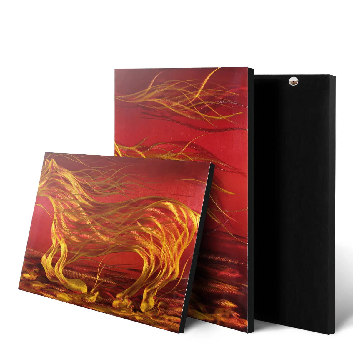 Стабильная рама за алюминиевым листом изготовлена из твердой древесины, обеспечивая защиту стенового искусства. На задней и боковой стороне декора завернут слой черной фланели, подчеркивает элегантную и великолепную картину.