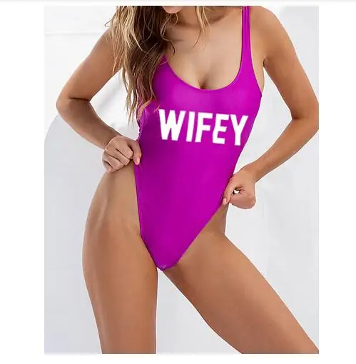 WIFEY/цельный купальный костюм с буквенным принтом; Женская одежда для плавания; Купальный костюм с глубоким вырезом сзади; Пляжная одежда для девочек; Купальник-монокини; Купальный костюм; Femme