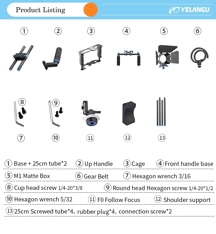 6. Клетка с функцией быстрого крепления, легко устанавливается на камеру, верхняя сторона пористого дизайна, стандартные резьбовые отверстия для камеры 1/4 "и 3/8" могут быть подключены к различным типам насадок, такие как magic arm, мониторы, микрофоны и т. Д.
