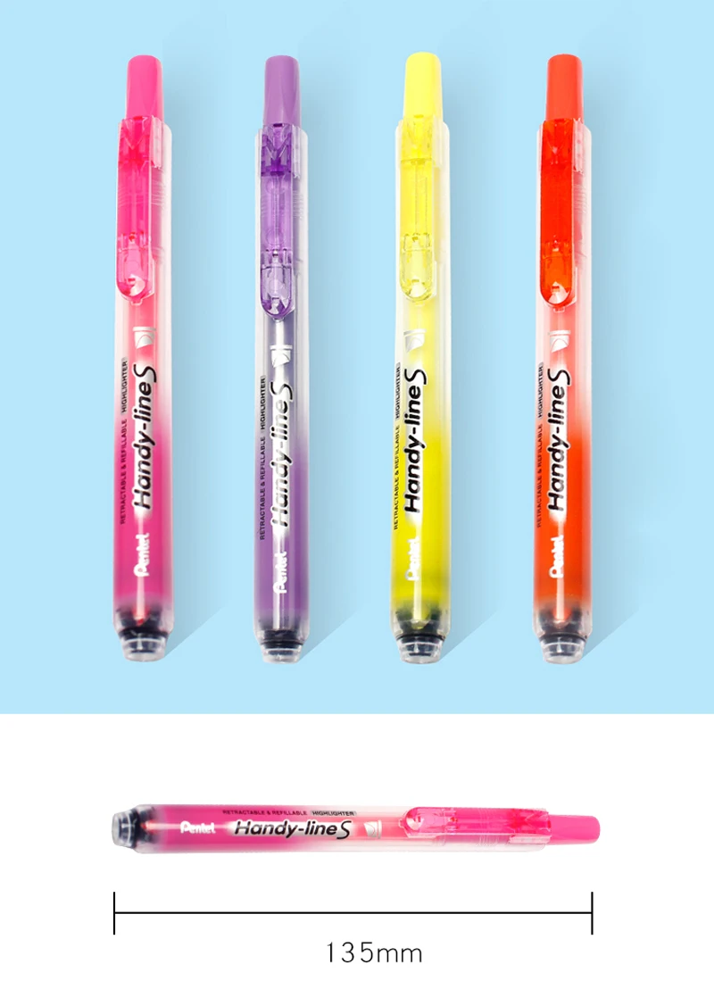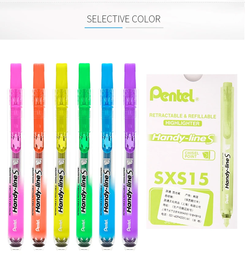 Ручка-хайлайтер Pentel Surligneur Handy Line S SXS15, выдвижная неоновая ручка 6 цветов
