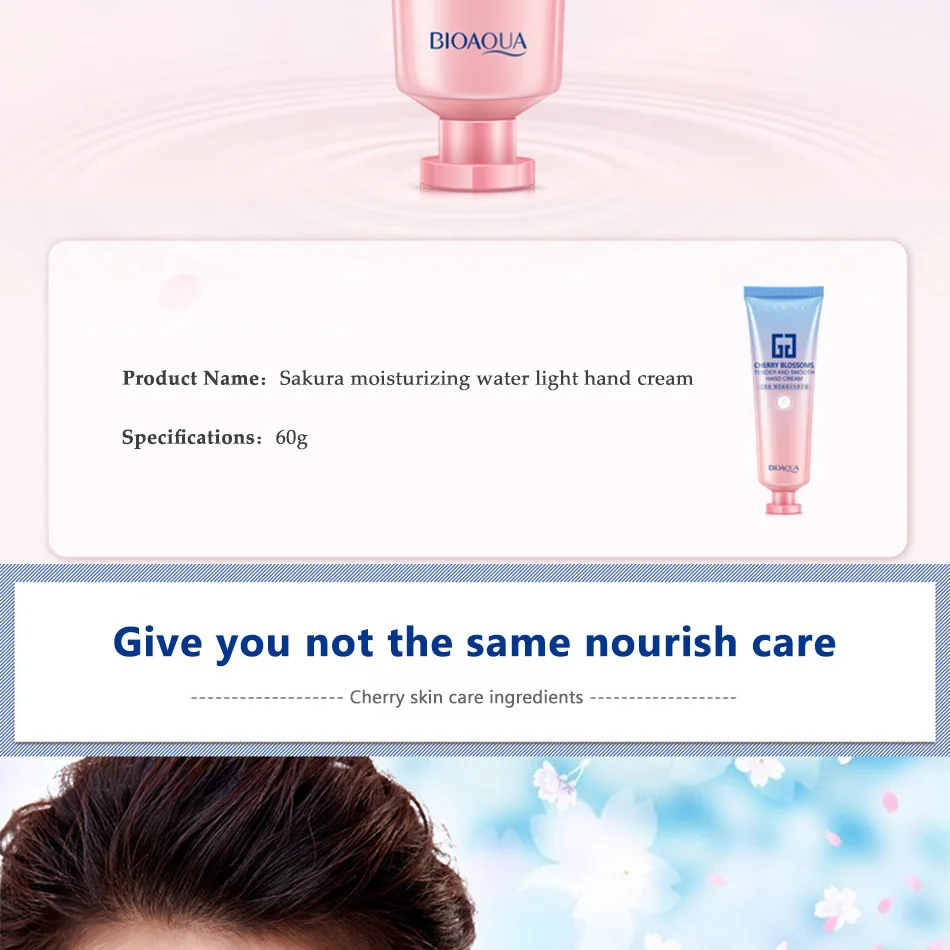 BIOAQUA Sakura Cherry Blossoms perfumed Hand Cream Moisturizing Whitening Ageless Anti Chapping Anti Wrinkles Hand Care Kits 60g