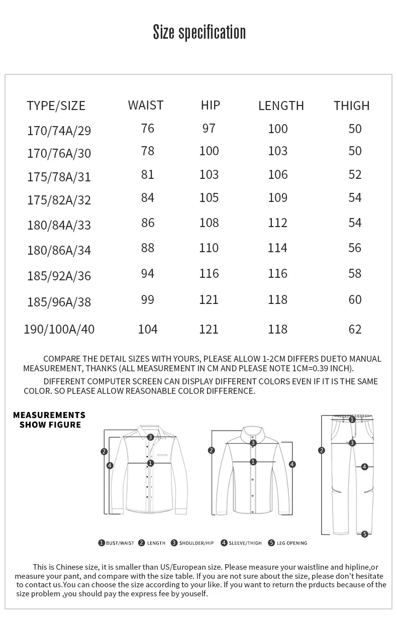 Примечание: 1. Пожалуйста, оставьте сообщение с вашим весом (кг/фунт) и ростом (см/дюйм). Мы поможем вам подтвердить размер. Спасибо!