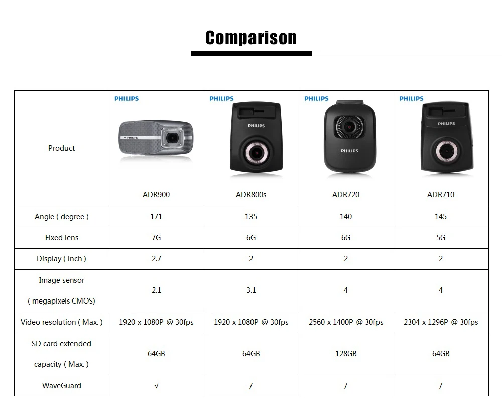 ДисплейМакс внешней памяти64 гРазмеры и ВесВес продукта0,0860 кгПосылка вес0,3900 кгРазмер изделия (Д x Ш x В)10,70x5,00x3,30См/4,21x1,97x1,3 дюймовПосылка (Д х Ш х В)15,20x8,70x8,00См/3,15x3,43x5,98 дюймовПосылка содержаниеПосылка содержание1 xPhilipsADR900 регистратор вождения, 1 х кронштейн, 1 х пленка, 5 х кабельный зажим, 1 х Липкая лента, 1 х OBD кабель, 1 х двуязычное руководство пользователя на английском и китайском языках
