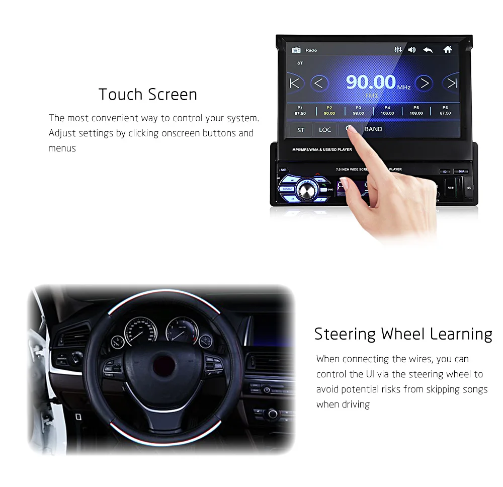 1 х MP5 плеер, 1 х Английский Руководство пользователя, 1 х пульт дистанционного управления, 1 х Хвостовая линия, 2 х разборная полоса