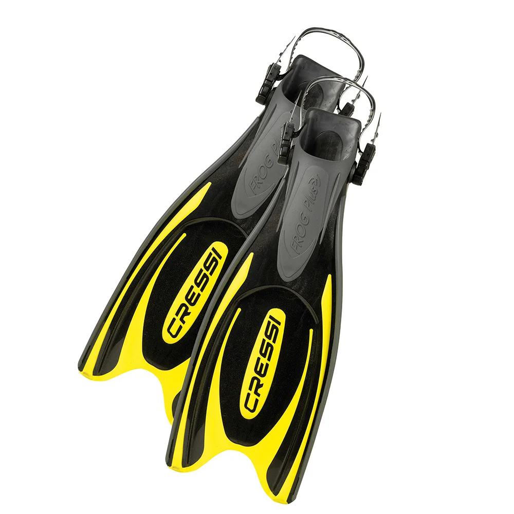 Frog Plus также включает запатентованное позиционирование Cressi на кармане стопы под лезвием. Эта конструкция увеличивает площадь рабочей поверхности лезвия на 20%. Сочетание эффекта качения и кармана для ног, установленного под лезвием, создает очень мощный и эффективный плавник с минимальным напряжением ног.