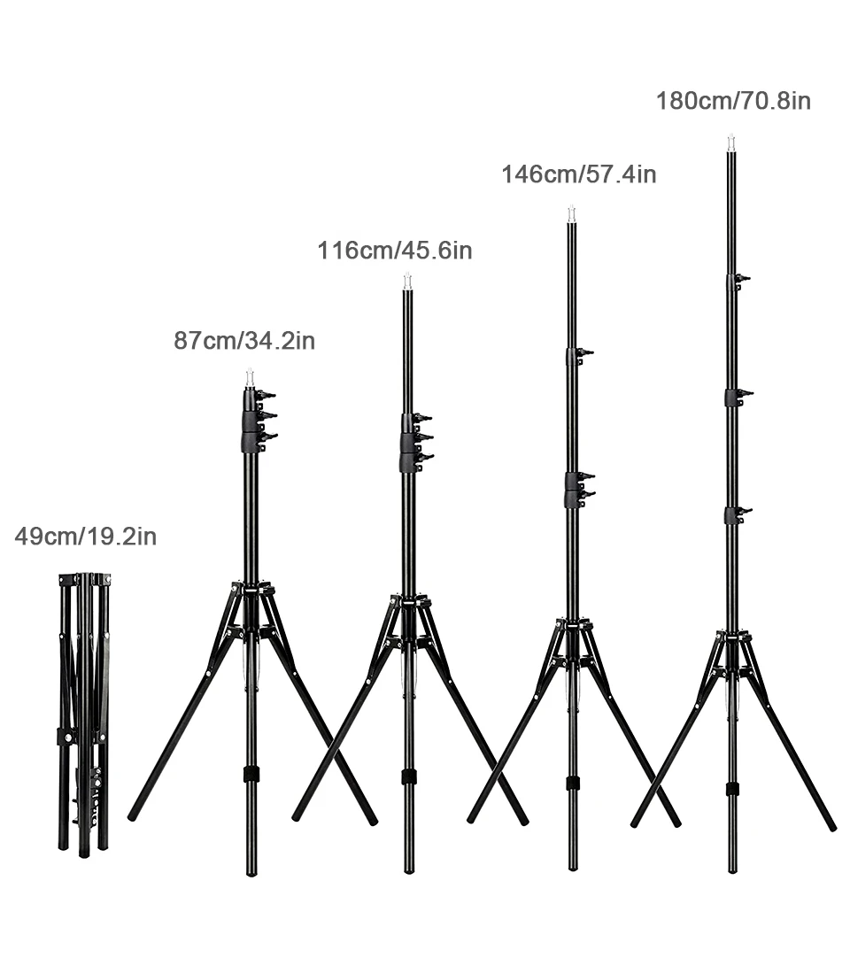 Регулируемый и складной светильник 78 "/198 см изготовлен из алюминиевого сплава, придавая ему исключительную прочность при работе. Для лучшей стабильности, мы настоятельно рекомендуем растянуть его до 66 ". При регулировке шеи рекомендуемый угол будет в пределах 15 градусов