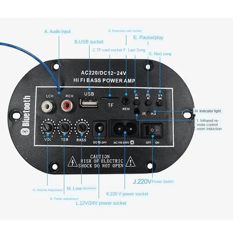 Бытовой/Автомобильный цифровой усилитель мощности встроенный Bluetooth 12V24V220V Параметр: Напряжение: 12V24V220V Номинальный ток: 3A Номинальная мощность: 40 Вт Пиковая мощность: 150 Вт FM: Поддержка Bluetooth: поддержка Размер: 138*55*80 мм Слот для карт: sd-карта/tf-карта/u-диск Особенности: 1. Поддержка внешнего сигнала напрямую. 2. Поддержка Bluetooth, в сочетании с телефоном может быть достигнуто после хорошего музыкального радио. 3. Поддержка fm-радио удаленного дисплея, mp3-плеера. 4. Модуль разработан с MP3 / WMA аудио декодер чип. 5. Поддержка USB/sd-карт, песня, следующая песня, быстрая передача вперед, перемотка, громкость плюс/минус, воспроизведение/пауза, остановка, одно повторение, отключение звука, песни для выборов 6. Поддержка функции отключения памяти: память до включения воспроизведения песен и громкости 7. Мощность: 150 Вт 7. Удаленное Расстояние: 2 м-5 м 8. Мощность: ac220в, DC 12 В/24 В Примечание: Из-за различных производственных партий, тип 1 и тип 2 отправляются случайным образом Посылка: 1 шт. усилитель 5 шт. аксессуары (бесплатно)