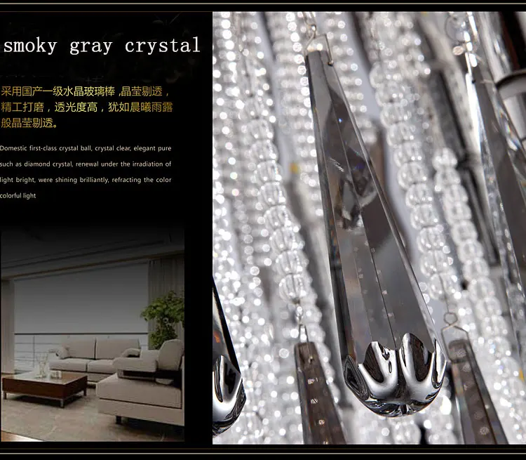 Светодиодный светильник-люстра с круглым роскошным дымчатым серым кристаллом