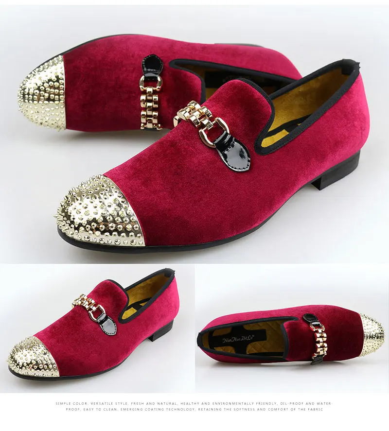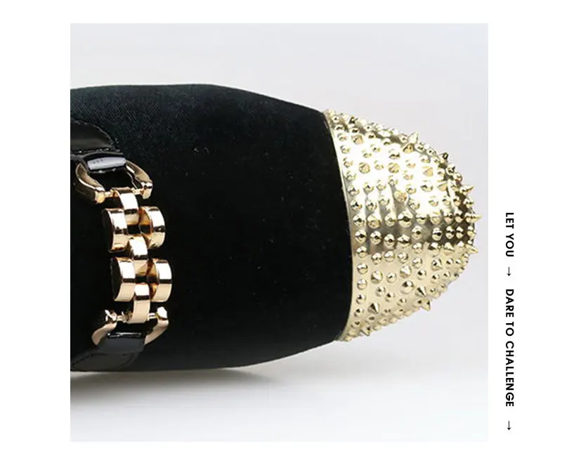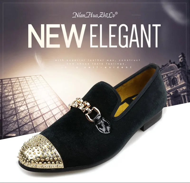 Мужские бархатные туфли ручной работы с золотыми цепочками и пряжкой; Вечерние мужские модельные туфли с золотым носком и металлическим украшением; Лоферы; Прогулочная обувь