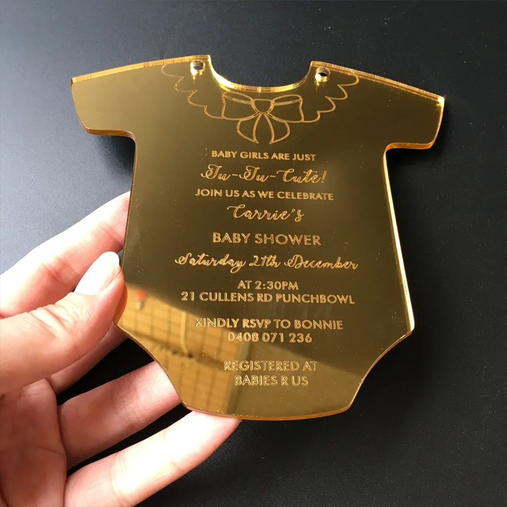 Индивидуальное детское платье с гравировкой в форме 145x145 мм, Серебряное/золотое зеркальное акриловое крестильное приглашение, 100 шт. в партии