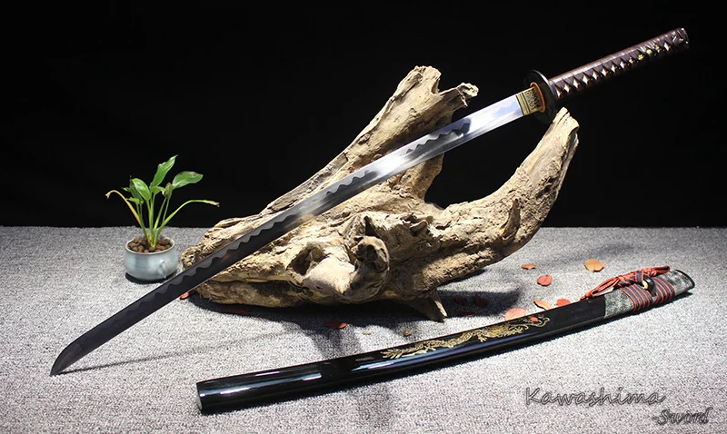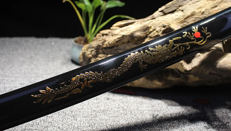 Overall Length:104CM Blade Length(without Habaki):71CM Blade Material:High carbon steelBlade Feature:Forged,polished,platingBlade Thickness: 7.0mmBlade Width: 3.2cmScabbard (Saya)Material: hard wood, dragon design, with real stingray skin Scabbard (Saya) Length:76cmHandle (Tsuka)Material: 26cmRayskin(same): real stingray skinIto & Sageo:leather ito; polyester rope sageo.Blade Edge: sharpnessTsuba material:iron Fuchi &Kashira Material: zinc alloy Habaki Material: BrassOther Fittings(Seppa,Menuki): Brass Fittngs Feature: sanding poslish, platingPacking: Hard foam box,with silk bag