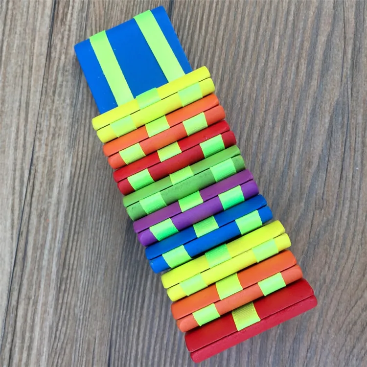 Размер: 5*5*7 см Как играть: Зажмите одну часть в конце рукой, и каждый раз, когда ваше запястье вращается, верхняя часть лоскута будет складываться по одному, и будут появляться звуки. Повторять это очень весело. Цвет любит raibow, я Высокое качество