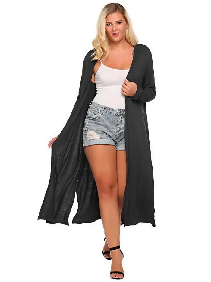 [Стиль]: IN'VOLAND, большой размер 5XL, женский длинный кардиган, свитер, Повседневный, осенний, с длинным рукавом, однотонный, открытый, спереди, с раздельными карманами, пальто, плюс размер