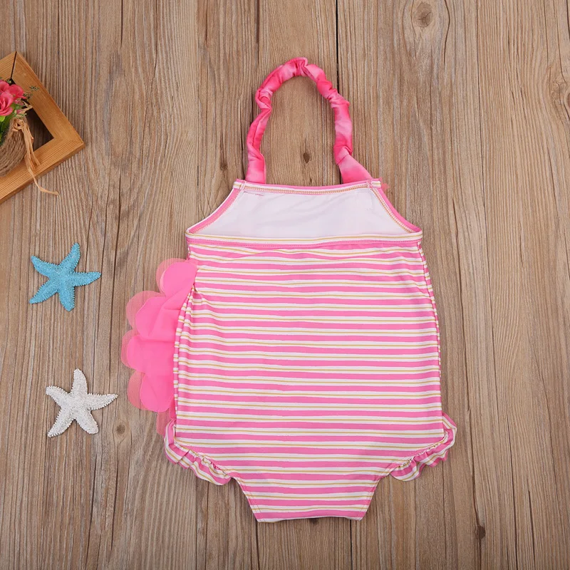 Детский купальный костюм в полоску с изображением фламинго для девочек; Купальный костюм!