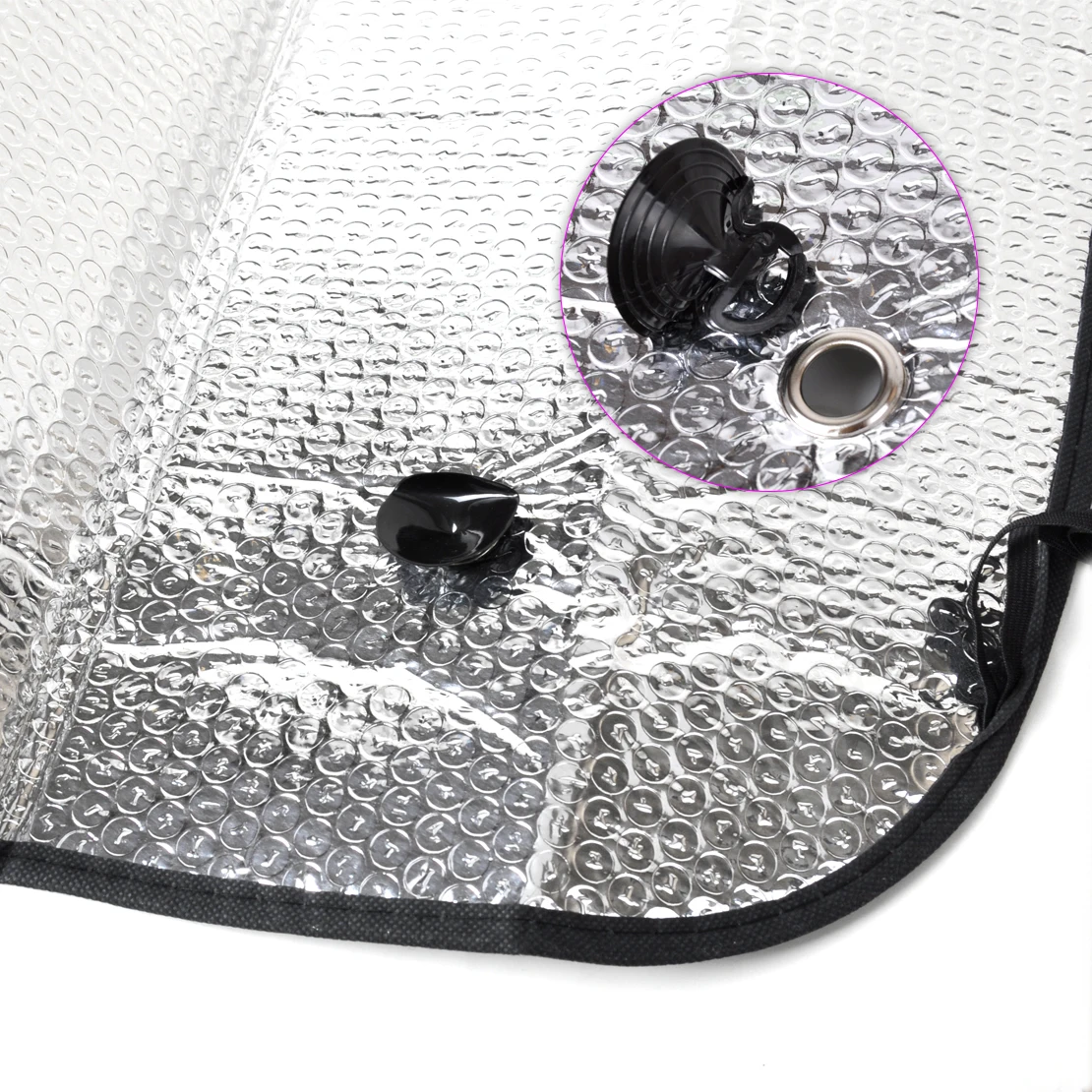 Уменьшает тепло, отражая солнце. Сохраняет автомобиль прохладным летомОтражает солнечные лучи для защиты вашего салона автомобиля и предотвращает растрескивание приборной панелиБлоки 99% UV-A и UV-B лучейГибкий и легкий вес, прост в эксплуатации. Легко складывается для компактного храненияЛегко устанавливается и снимаетсяДва черных эластичных ремня обеспечивают защиту от солнца.Установите его в нужное место, переднее или заднее лобовое стекло