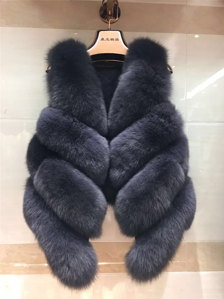 Вся кожа-это большой жилет из лисьего меха только для вас на заказ!