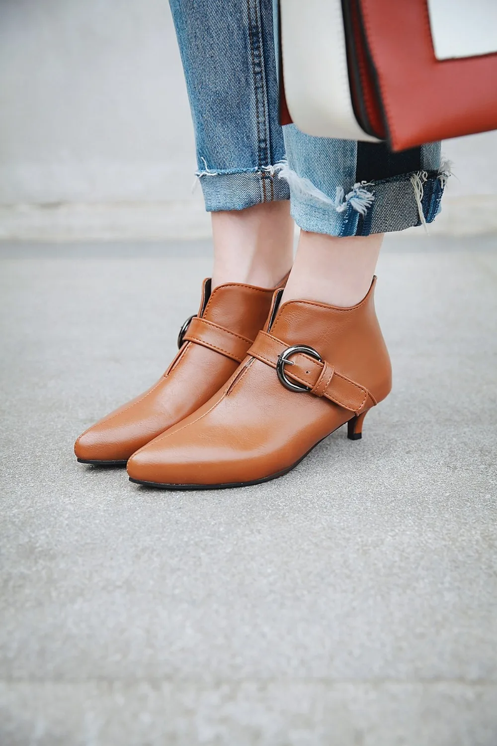 Высокое из натуральной кожи; Женские ботинки из Искусственной ПУ (4 см) 1,57"