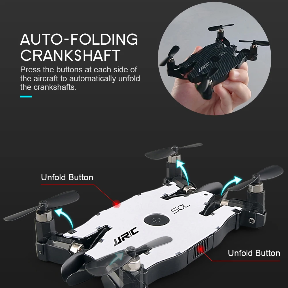JJR/C H49WH имеет ультратонкий и сверхпортативный складной дизайн, толщина всего 0,95 см. Это оригинальная складная конструкция, уникальная и гладкая, с одним нажатием, и руки выйдут. Более того, она использует совершенно новую HD-камеру 720P для более четкой аэрофотосъемки, управление через приложение Wi-Fi с режимом гравитационного датчика. Отличный выбор для любителей RC.