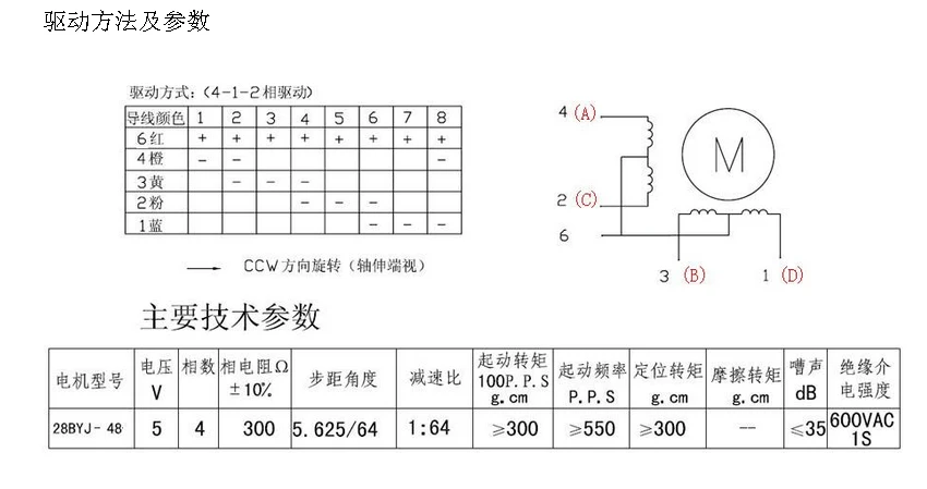 5-проводной 4 фазный шаговый двигатель, 24BYJ48.