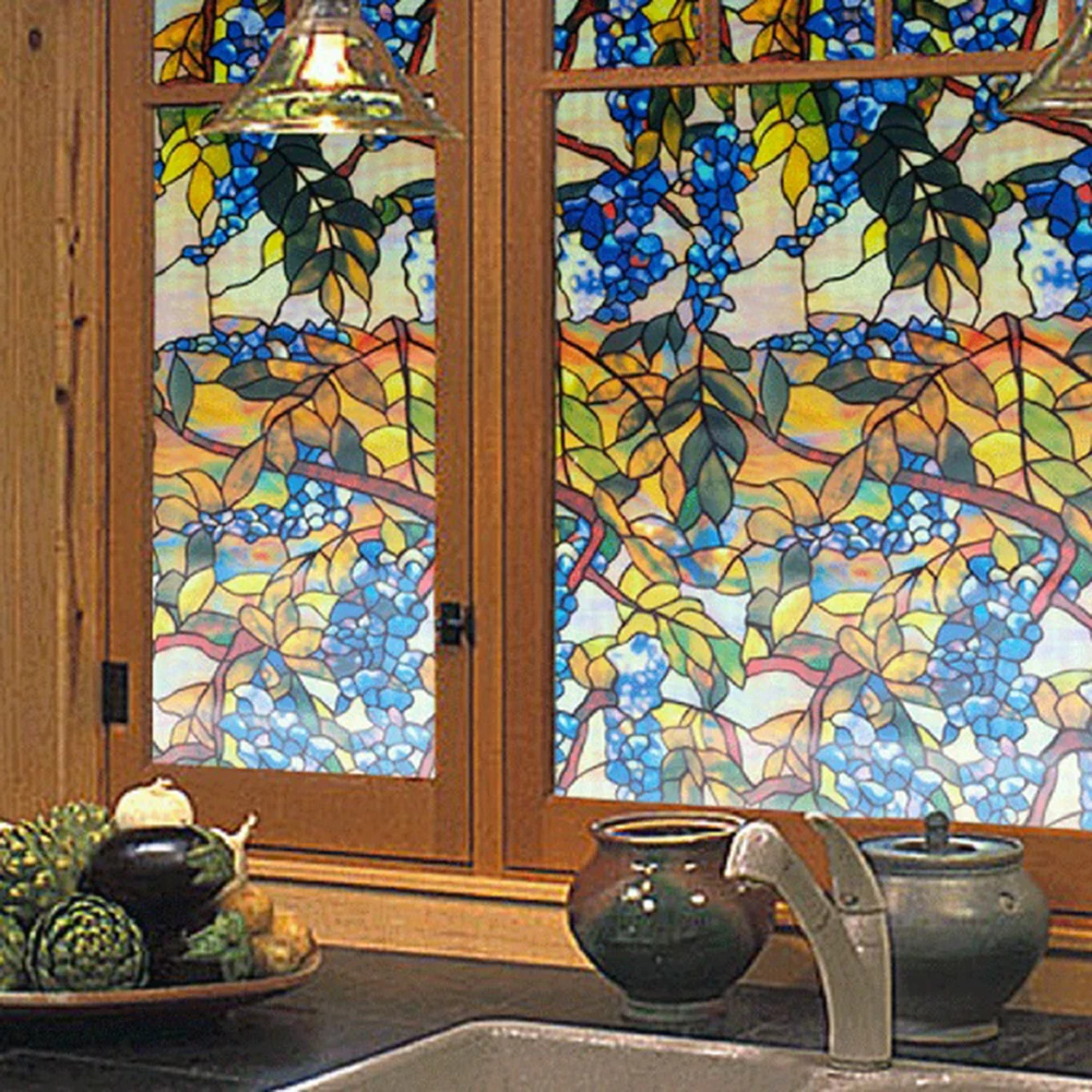 Витражная пленка Виноградная Цветочная Виноградная лоза статическое прилипание без клея оконная стеклянная пленка защита конфиденциальности декоративная оконная пленка