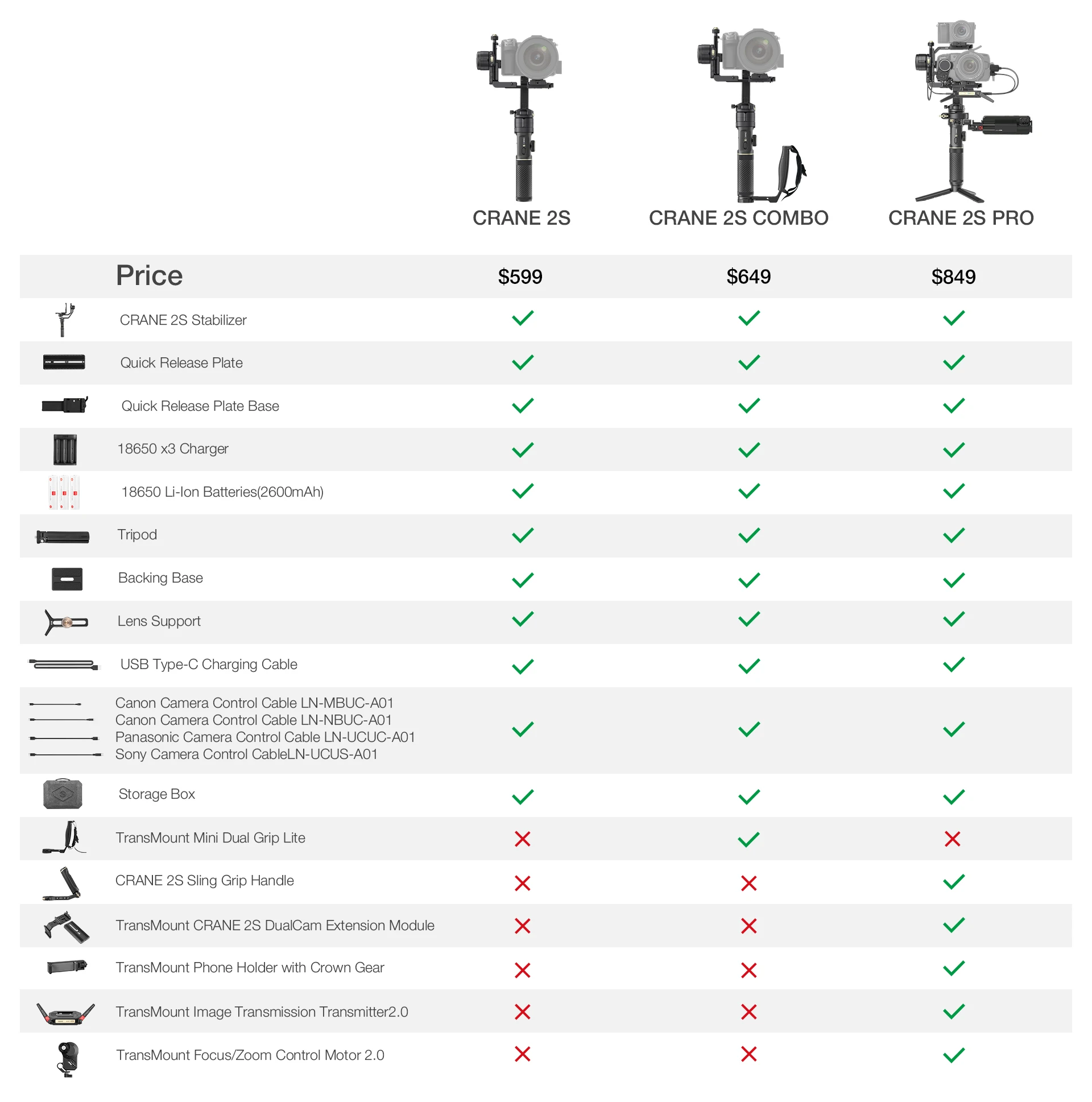 CRANE 2S поставляется в стандартной комплектации с вертикальным быстросъемным креплением и безопасной ручкой для высококачественной вертикальной съемки.