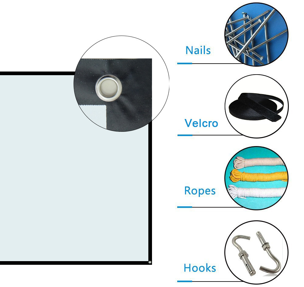 Как установить экран? Существует шесть металлические отверстия на экран, в соответствии с нашей & #12304;Установка&Amp; #12305; опыт, ногти, липучки, канаты, крючки, все это может быть использован, чтобы сделать очень стабильная установка экрана. Если у вас есть проблемы с установкой инструмент, вы можете связаться с продавцом, мы будет тепло для вашей службы.