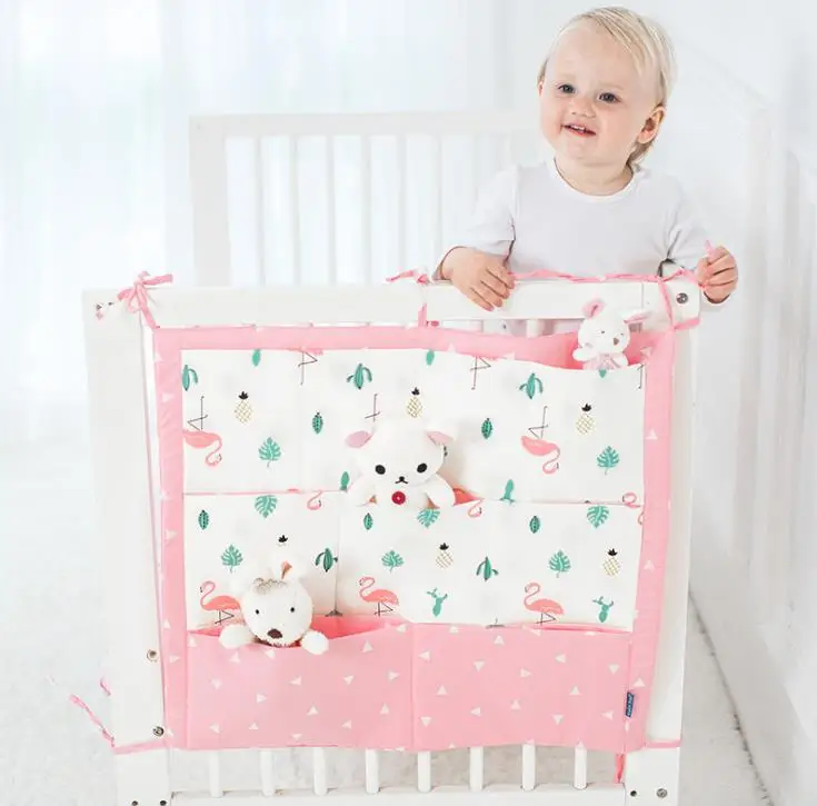 60*50cm Bed Hanging Storage Bag Cotton Newborn Cot Bed Crib Organizer Toy Sundries Diaper Pocket Bed Bag Crib Baby Bedding Set