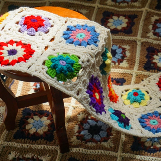 ● Вязаное крючком одеяло ручной работы, случайный цвет цветка