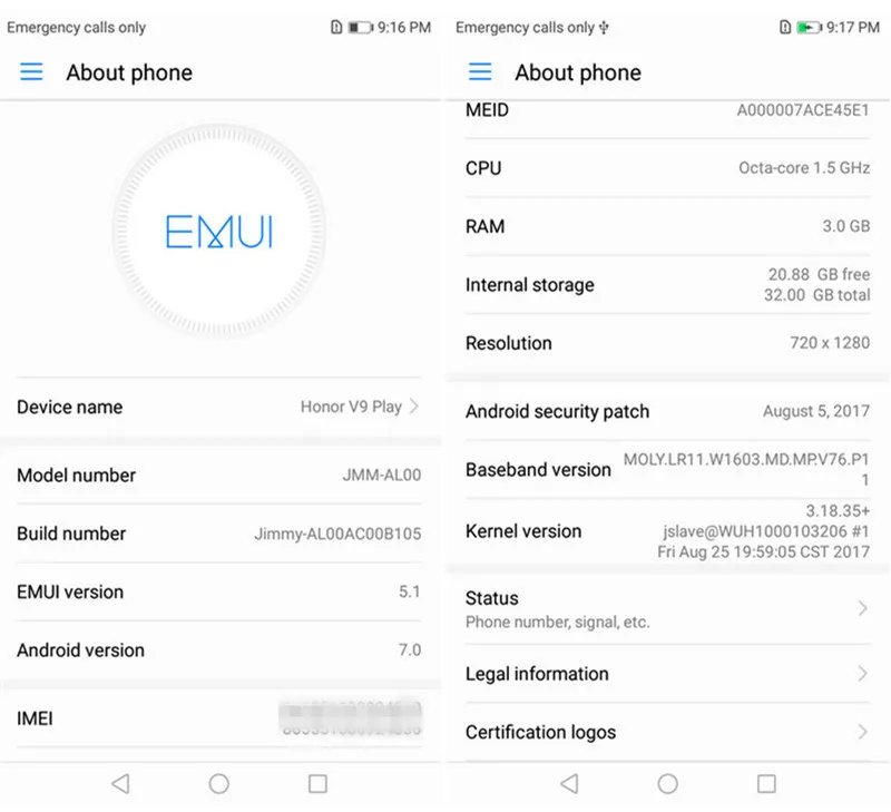 System : EMUI 5.0,Android 7.0,Original Firmware