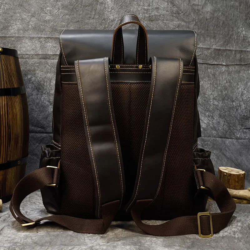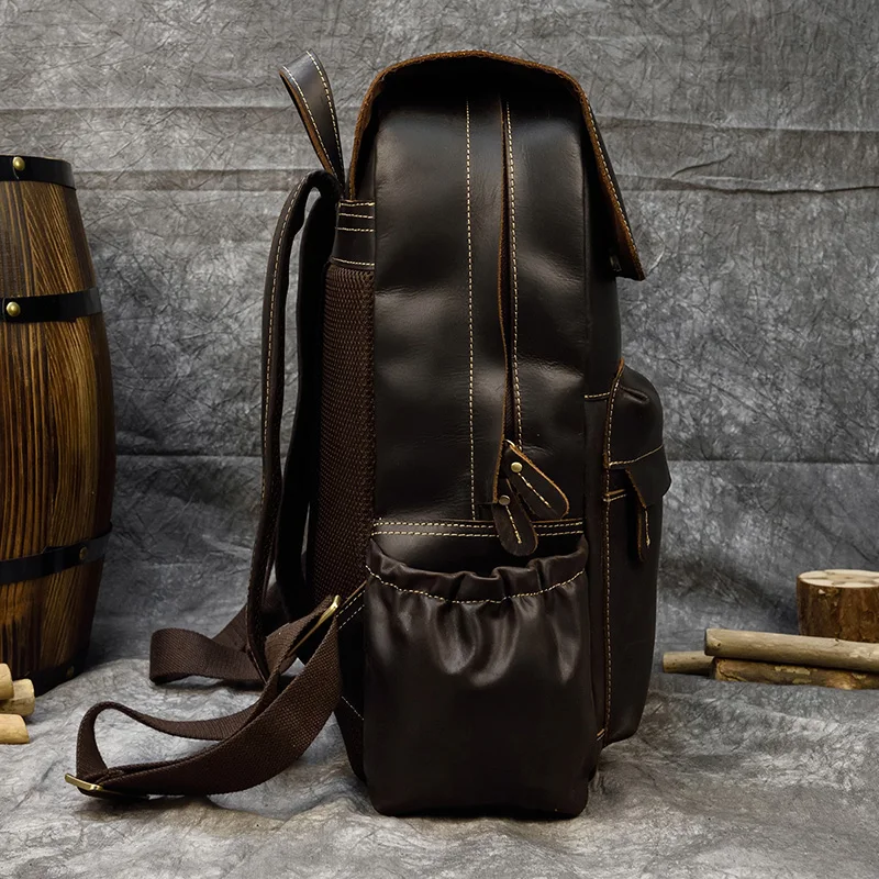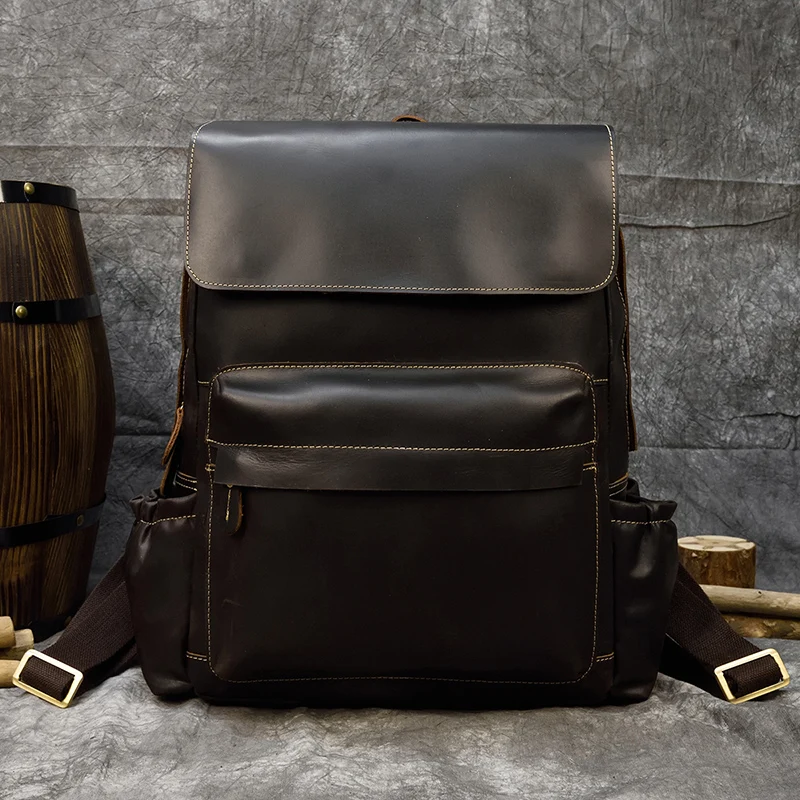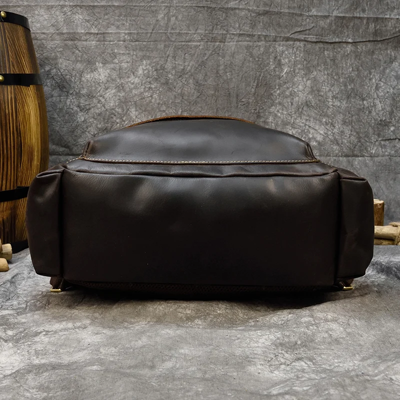 Изготовлен из 100% натуральная кожа/Натуральная Воловья кожа Цвет: коричневый, темно-коричневый Вес: около 1,7 кг Маленький размер: 38*35*15 см Большие размеры: 40*31,5*12 см