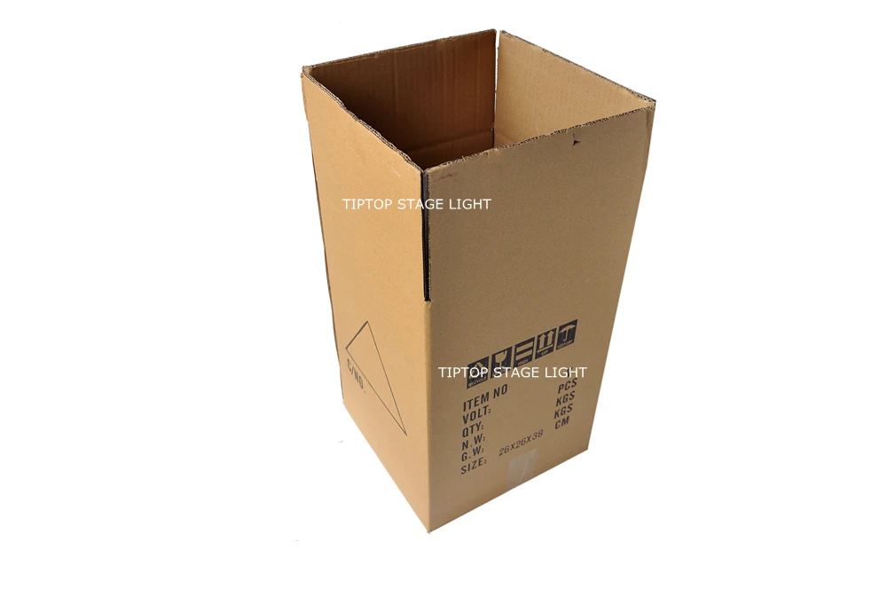 Напряжение: AC90V-240V/50-60 Гц Потребляемая мощность: 200 Вт Светильник источник света: 24x18 Вт tyanshine светодиодные лампы Цвет: RGBWA + UV 6in1 смешивание цветов DMX512 Каналы: 6/10 Двухканальный режим Управление: Dmx512/Звук/Авто/Руководство/мастер-раб Угол луча: 25 градусов/40 градусов опционально Регулировка яркости: 0-100% линейная регулировка Материал корпуса: литой алюминиевый чехол Гарантийный срок изделия: 1 год Сертификация: CE по ограничению на использование опасных материалов в производстве Степень защиты оболочки: IP20 Вес нетто: 3,3 кг Способ упаковки: стандартная упаковка-это картонная коробка с пеной. Чехол для полёта с упаковкой колес является необязательным. Упаковочный лист для каждого блока: 1 х светодиодный светильник 1 х кабель DMX Руководство пользователя-1 шт.;