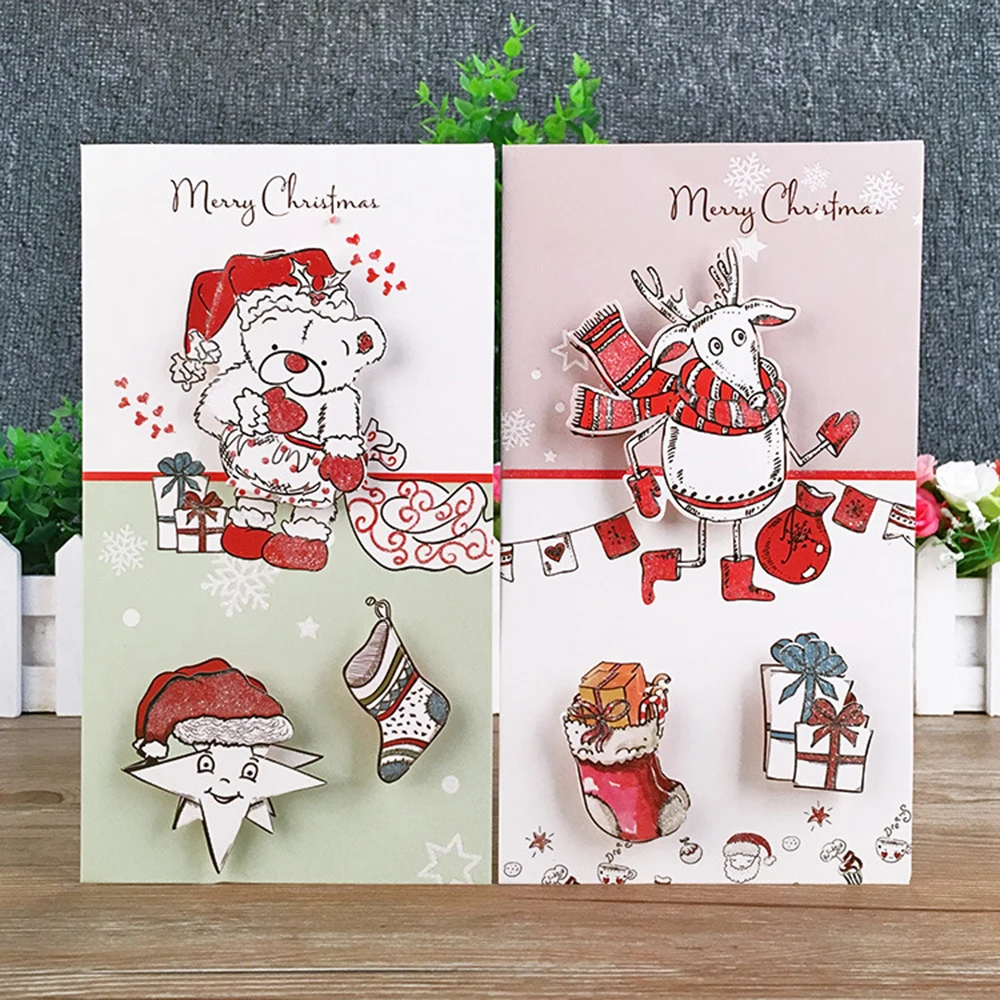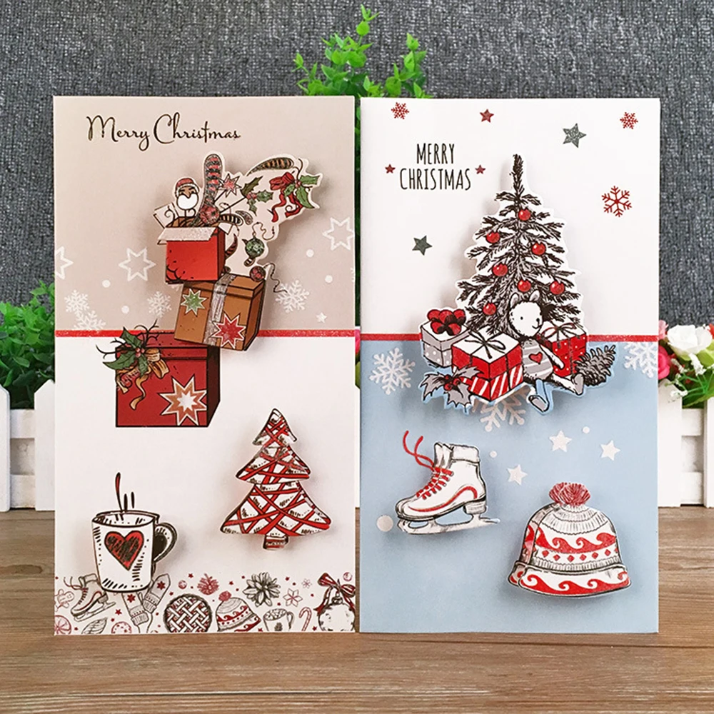 8 шт. креативные рождественские поздравительные открытки новый год 3D Мини Рождественская елка поздравительные открытки открытка подарки открытка Рождественская вечеринка украшение