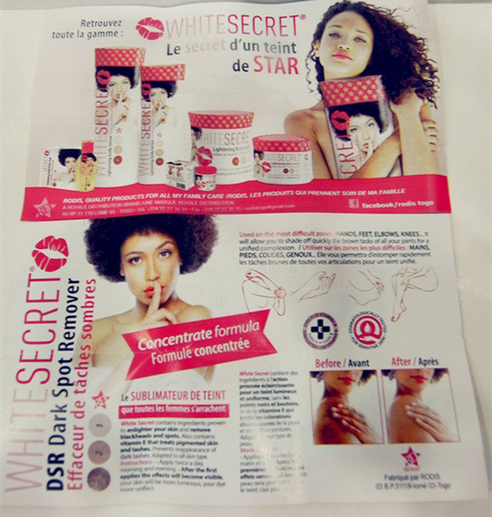 Белое секретное темное удаление пятен крем используется на сложных зонах: руки, ноги, локоть, колени.