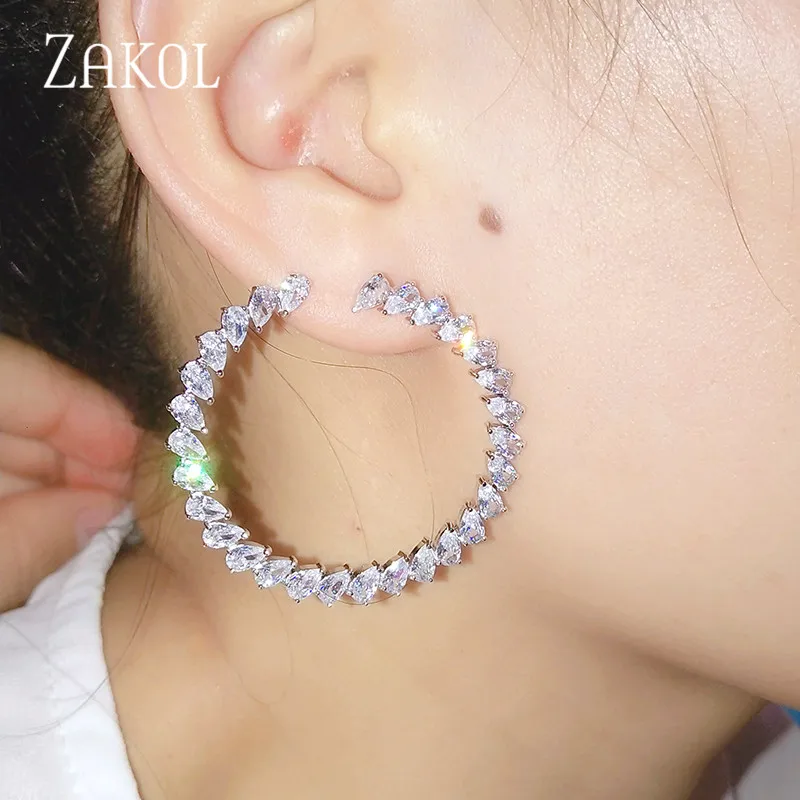 ZAKOL новые модные серьги-гвоздики Прозрачная Круглая Форма фианит ювелирные изделия для женщин подарок на день рождения FSEP2033