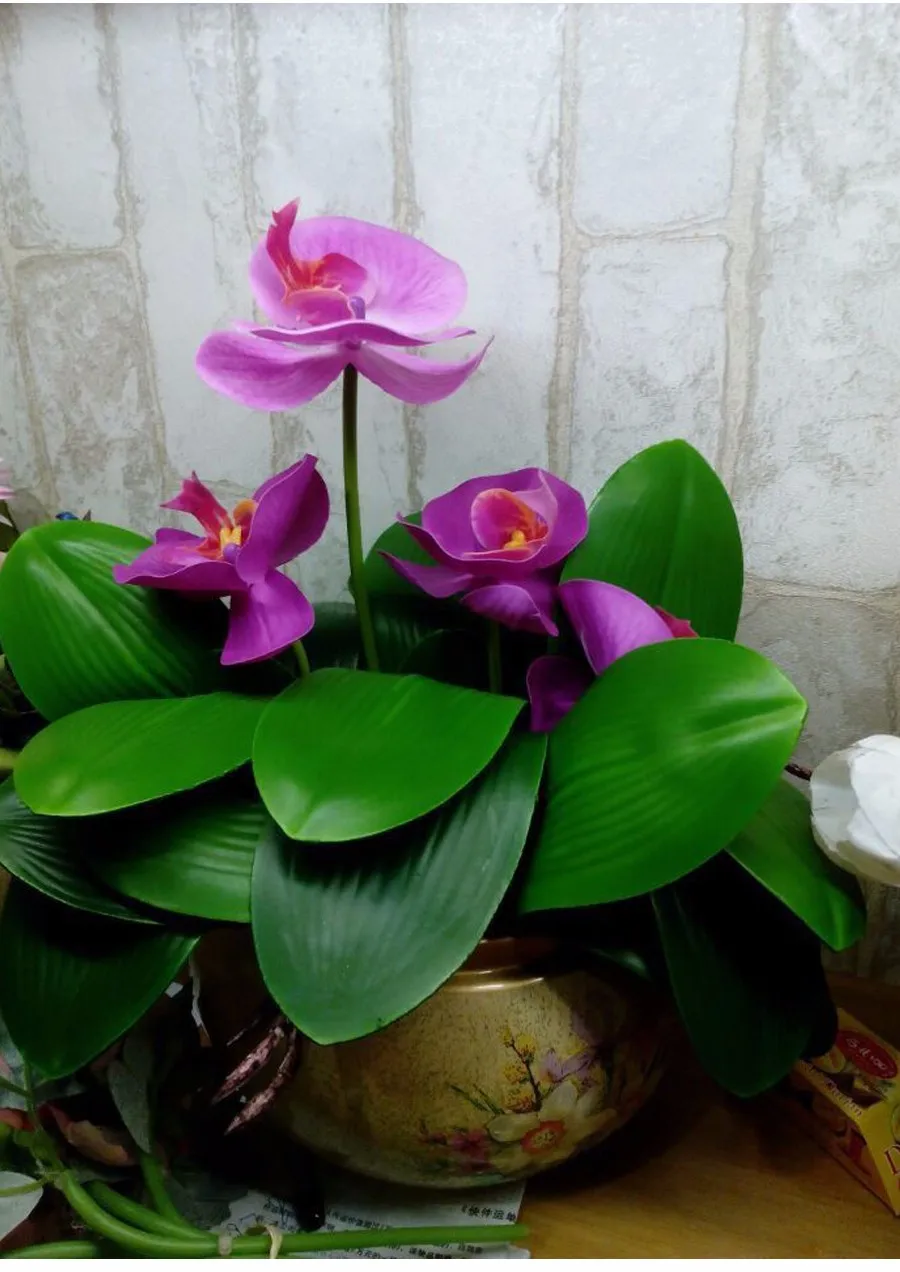 1 шт. Настоящее прикосновение Искусственный завод фаленопсис лист шелковый завод
