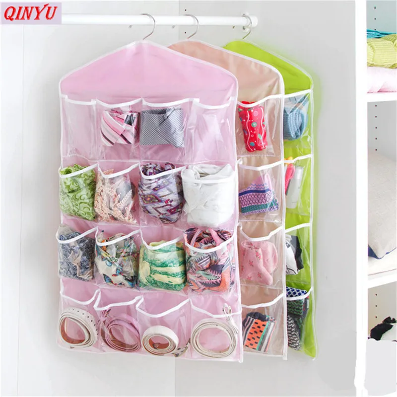 70cm40.5cm 16 сетки шкаф висит Органайзер Нижнее белье Бюстгальтеры Носки Галстуки пакет подвесной на дверь сумка для хранения Экономия пространства 5zCF017