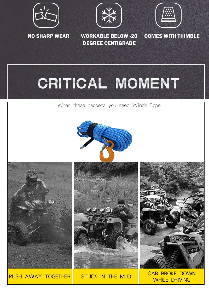 7. Upgrade your winch with stronger winch rope than traditional steel cables.
