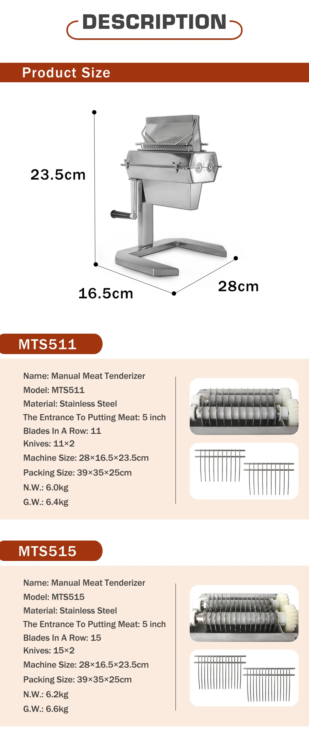 Tenderizer имеет ширину 5 дюймов с максимальной шириной реза 125 мм (ручное измерение может иметь погрешность 1-2 мм).