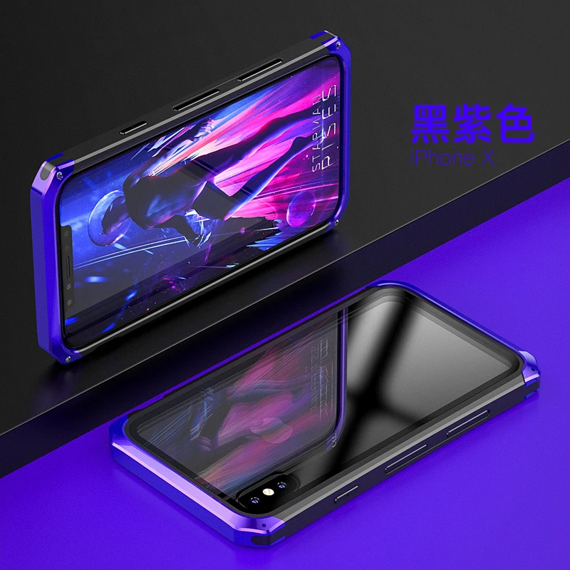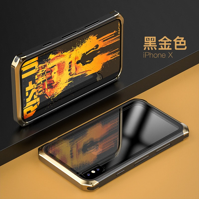 Качество:100% оригинальный бренд, Высококачественная Защитная пленка для телефона Материал:Алюминиевый сплав + ПК + гибрид из закаленного стекла Модель: Идеально подходит для Iphone X 5,8 "/7/8 Plus/XS/XR/XS MAX Особенности: Оригинальный брендовый ударопрочный Модный Роскошный чехол для телефона с защитой от отпечатков пальцев для iphone