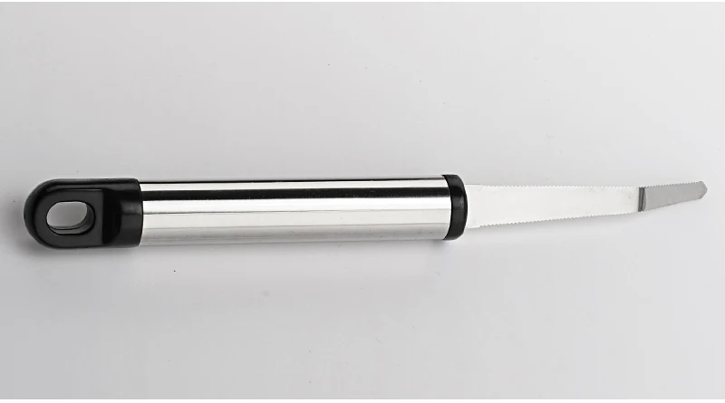 * Материал: нержавеющая сталь 430 * Цвет: серебристый + черный * Вес нетто: 40 г * Посылка Вес: 60 г * Упаковка: В полипропиленовом пакете * Посылка включает: 1 * зубчатый нож из нержавеющей стали