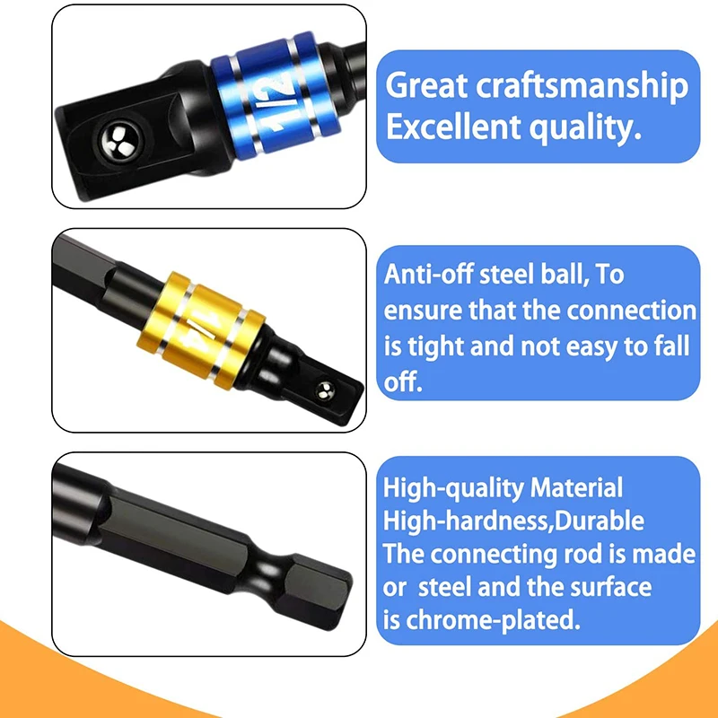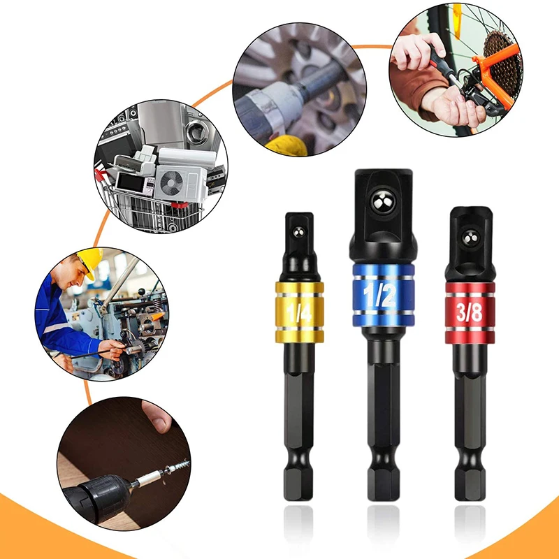3 шт. 1/4 "3/8" 1/2 "ударопрочный адаптер с шестигранным хвостовиком, сверло, гайка переходника, удлинитель, адаптер питания