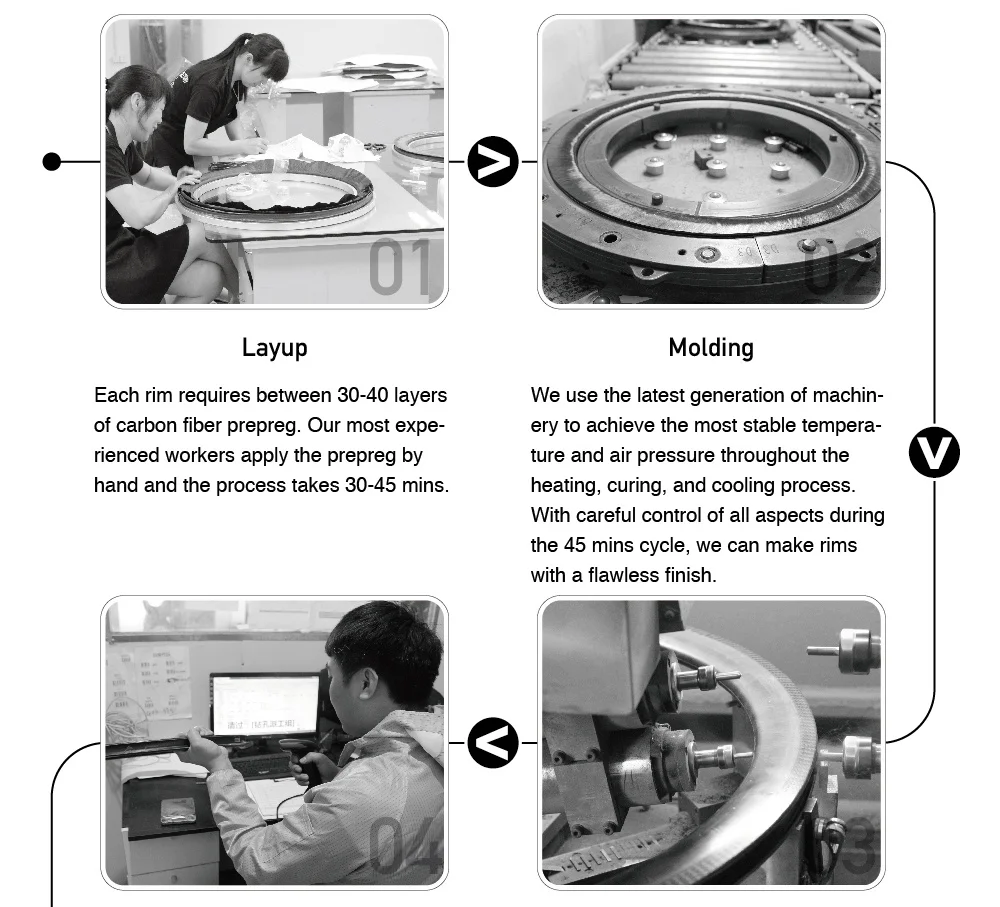 Каждое производственное звено ELITEWHEELS имеет контроль качества, чтобы строго контролировать и записывать производственный процесс, содержание смолы в препреге, вес обода, температуру окружающей среды, метод ткачества, количество материалов, угол сверления, натяжение спицы, влажность подшипника, жесткость колес, Давление в шинах и все детали находятся в центре нашей заботы, просто чтобы доставить самый идеальный продукт клиенту.