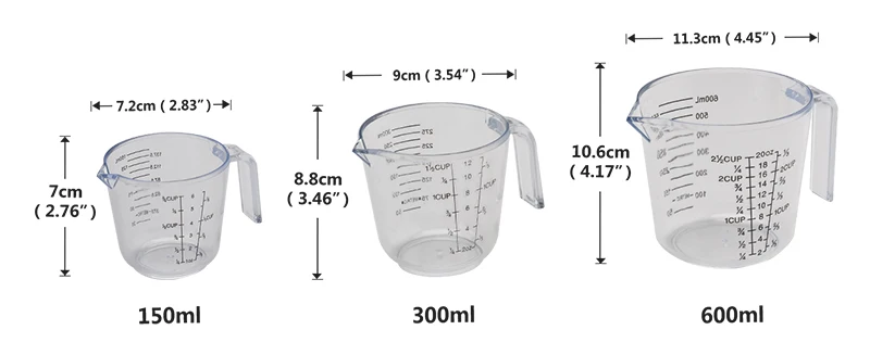 Материал: PS пищевой материал Цвет: прозрачный цвет Вес нетто: S:45 г, M:81 г, L:112 г Вес упаковки: S:80 г, M:110 г, L:140 г Упаковка: в воздушной подушке Упаковка включает: 1 * Мерный стакан с ручкой