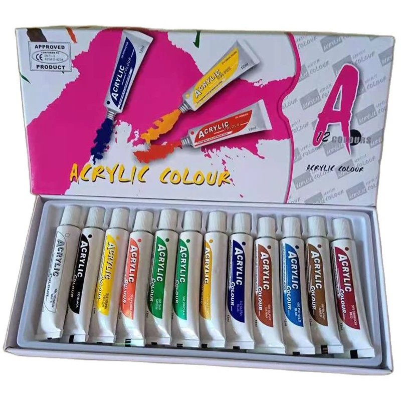12 мл и 12 цветных акриловых красок
