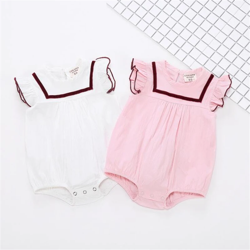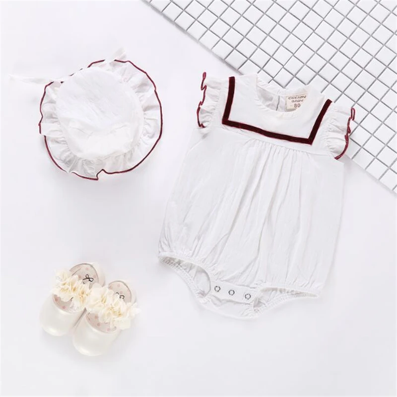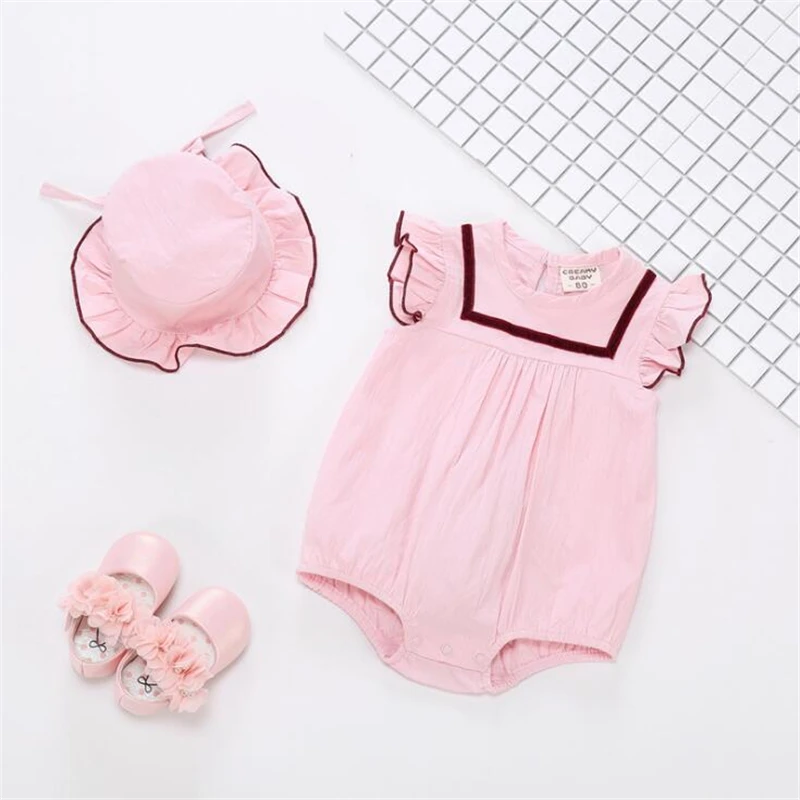Летний комбинезон для новорожденных девочек, белый/розовый милый комбинезон с солнцезащитными шапками, Bebes, комбинезон, летняя одежда