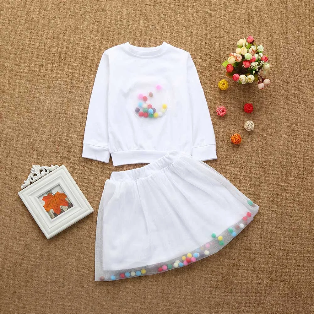 Комплект из 2 предметов для маленьких девочек; Яркие топы с шариками; рубашка; юбка-пачка; комплект одежды