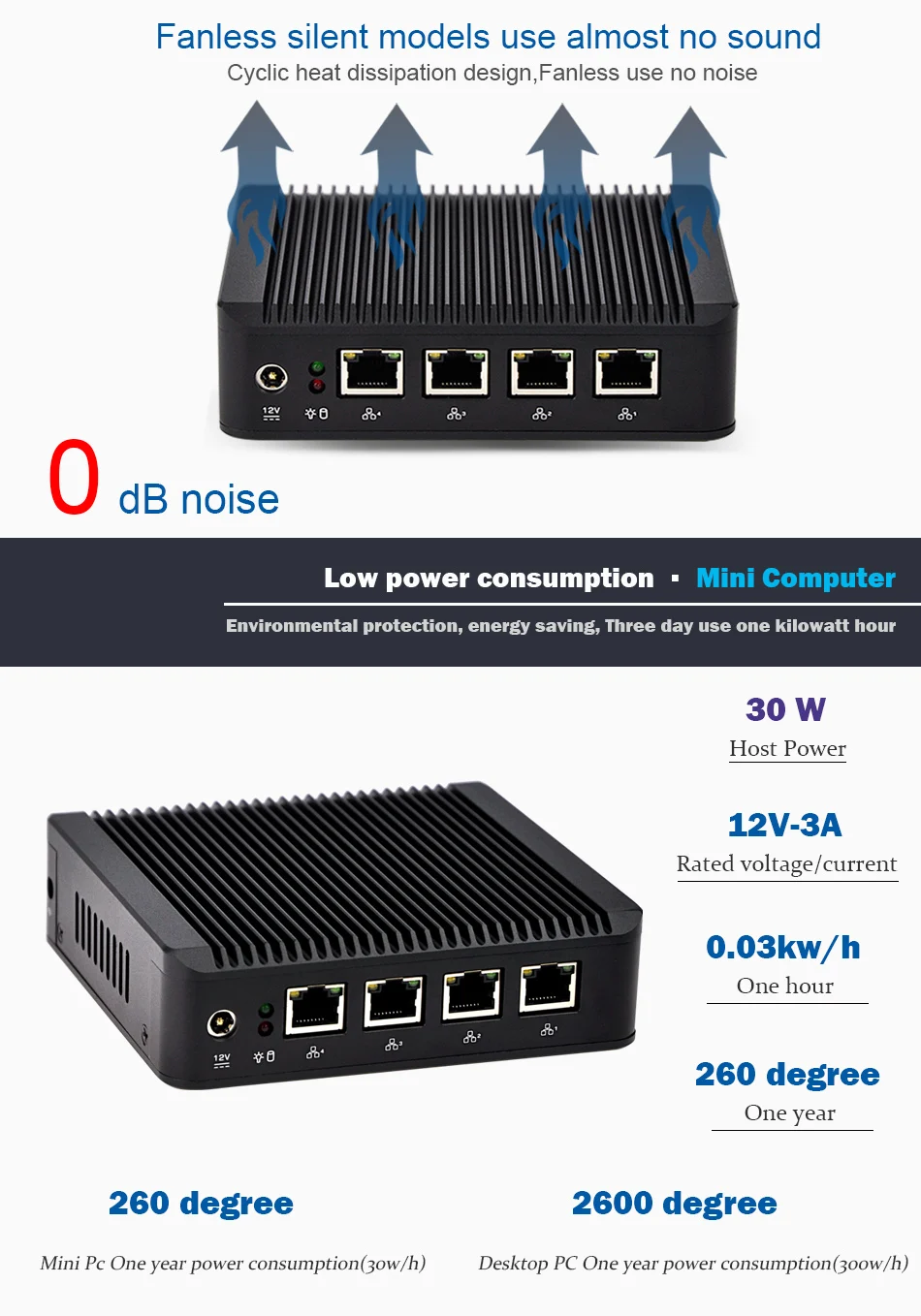 1. Безвентиляторный, нулевой шум. 2. Может работать как маломощное устройство брандмауэра, поддержка Sophos UTM, CentOS и т. Д. 3. Простота в эксплуатации, нажмите DELETE ввод в BIOS, F11 загрузки с USB диска. 4. Память и память могут быть вывезены для замены другой емкости самостоятельно. 5. BIOS может настроить для автоматического запуска после прерывания питания, определенного времени запуска. 6. Все мини-ПК/аксессуары прошли проверку качества перед отправкой. 7. Предоставляется полная гарантия на один год. 8. Индивидуальный/печатный логотип является приемлемым и бесплатным.