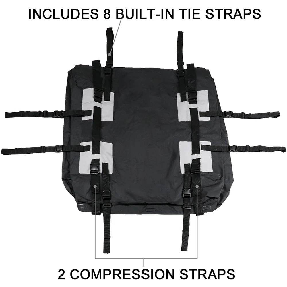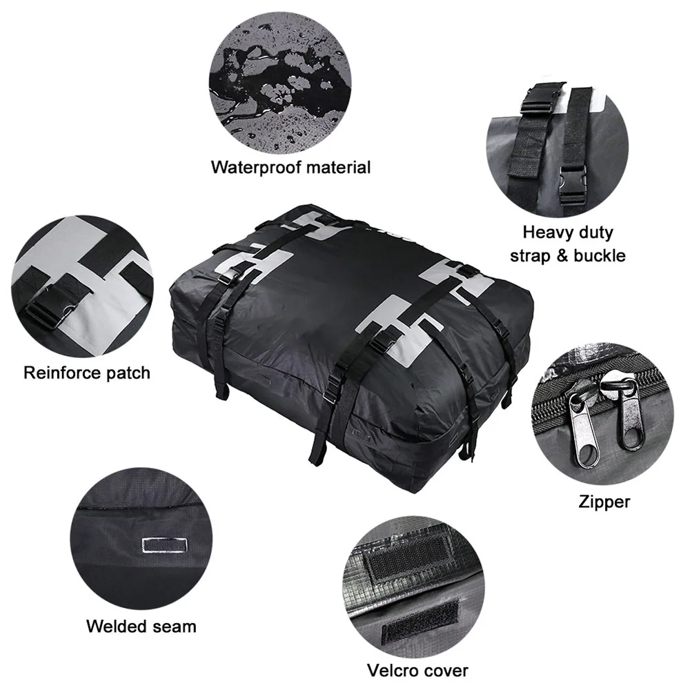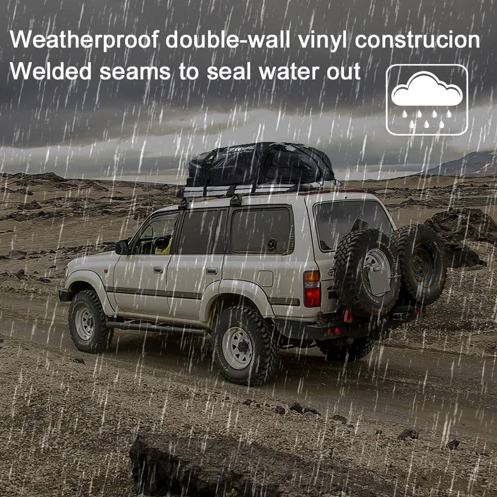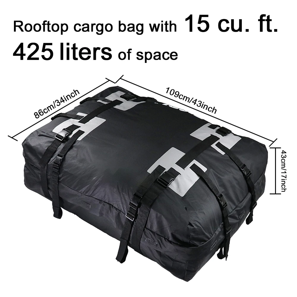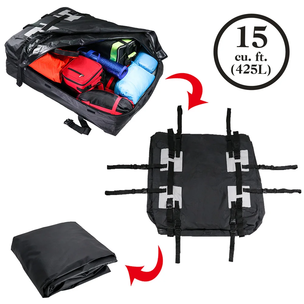 Вместимость 15 кубических футов, подходит для большинства автомобилей, небольших фургонов с рейлингами на крышу.